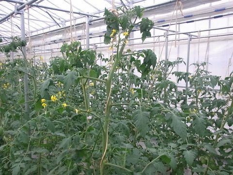 トマトの誘引作業