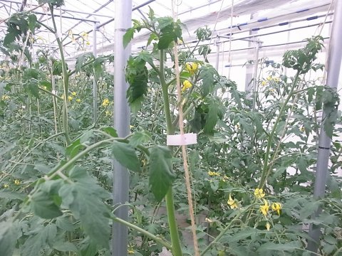 とうとうトマトの先端が誘引しているパイプ枠に達してしまいました。