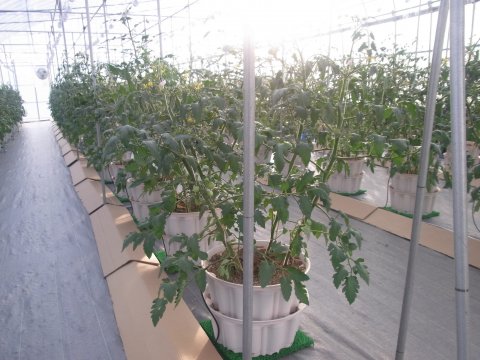 定植から47日となり、誘引も無事終了し、樹丈は70cmを超えています。 花は3段目が開花しており、1,2段目は実が大きくなってきています。 あと2週程度で収穫ができる見込です。 一方、既存の100坪ハウスは今月末で今期の収穫を完了する予定です。 うまくバトンタッチして収穫が継続できる予定です。