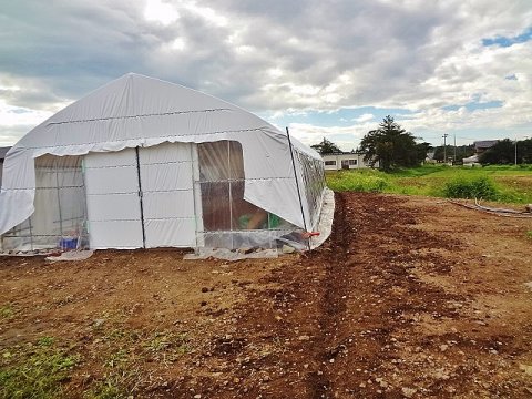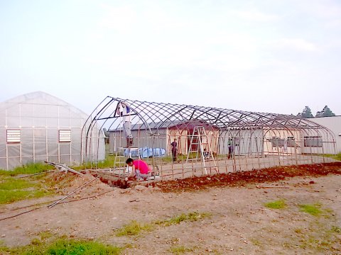 初めての我々スタッフだけのパイプハウス建設でしたが、見よう見まねでよくぞココまでというできの良さ。