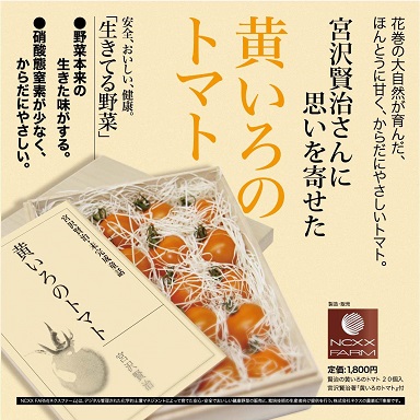 NCXXFARMのお土産品。宮沢賢治に思いをよせた、「黄いろのトマト」がこの度、花巻市が実施するふるさと納税制度「イーハトーブ花巻応援寄付金」の記念品として採用されました。