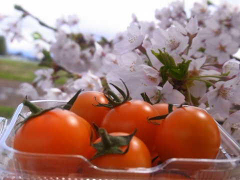 桜が何回でしたので、黄いろのトマトとコラボした写真を撮ってみました。