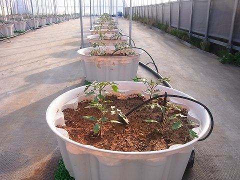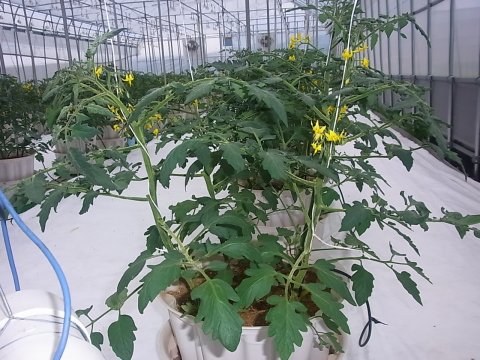 定植から37日が経ちました。 定植した時から見違えるような成長ぶりです。 既に花房2段目の開花も始まっており、生長は順調です。 今年は、通路に反射用シートを敷くことで、お日様の光を有効に活用することと、灌水用のパイプをこのシートで覆うことでパイプ内滞留水の温度上昇を抑えることが出来ます。 今後の生長具合にご期待ください。