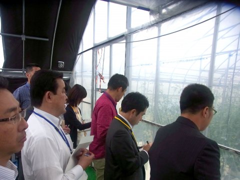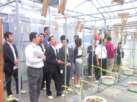 ネクスファームは植物工場ではないのですが、慣行農法とは一線を画した多段式ポット栽培を取り入れて栽培効率を向上していることと、ICT/通信技術を使った圃場の自動/遠隔管理による最適化について大変興味をもたれていったようです。