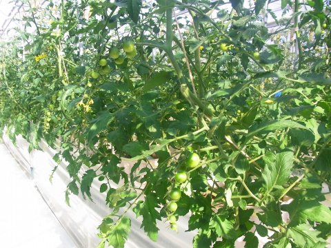 ハウスの中はお日様の恵みでぽかぽかですので、トマトたちはそんな秋の足音には気づかず、元気に育っています。