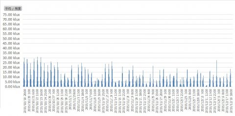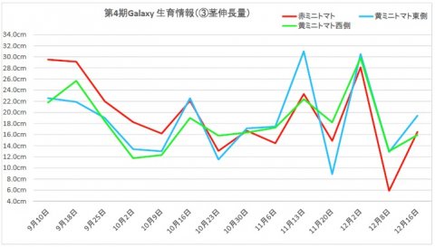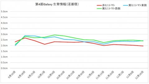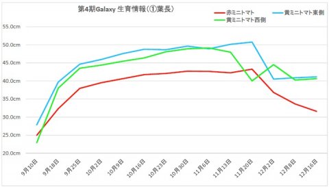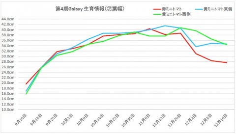 11月中旬からの葉長/幅が低下してきていますが、日照量の変化と関連があります。