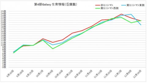 葉長/葉数は12月に入り減少してきており、日照との関連が推測されます。