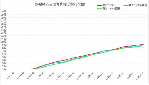 11月から収穫が始まり、現在では3段目の収穫となっていますが、開花している最上段は9段目となっています。