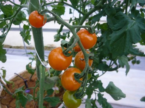 各ハウスのトマトは順調に生育しており、ところどころ色づき始めた実が見られます。