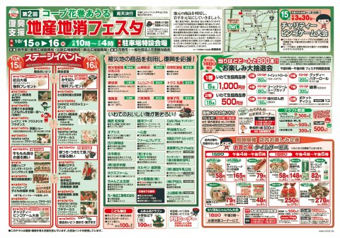 今週10月15日と16日の二日間、花巻市のコープ花巻あうるさんにて「復興支援 地産地消フェスタ」が開催されます。