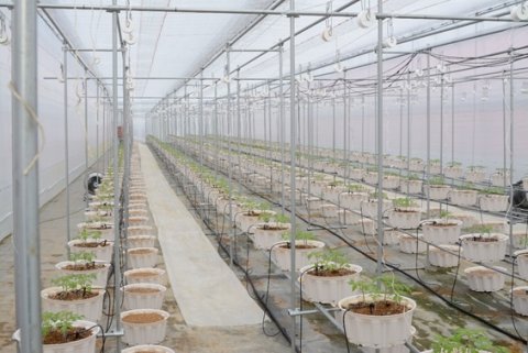 植え替えされた苗がICTシステムで温度管理されすくすく育っています。