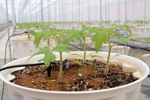 ICTシステムでポット内の土の水分量を測定し、最適な水分量となるよう自動で点滴されます。