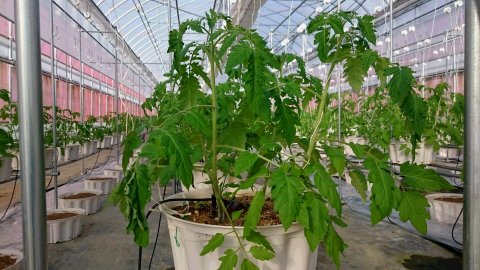 次に、試験棟で栽培中の「イチゴ」と「ほおずき」の花を紹介します。