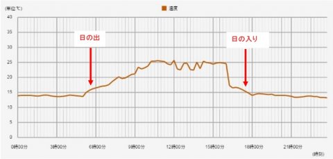 下のグラフはある一日の温度推移を表しています。