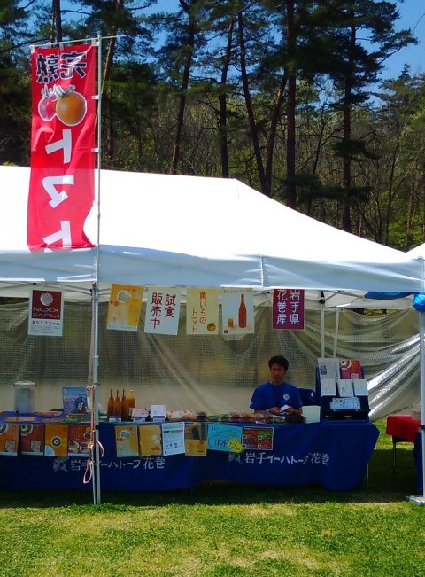 このイベントは、白金豚の串焼きなど花巻の美味しいものと工芸品やお土産の販売が行なわれる企画で、NCXX FARMは5色のミニトマト(赤、黄、オレンジ、紫、みどり)の他、当社黄いろのトマトシリーズ「黄いろのトマトラスク」、「黄いろのトマトのキーマカレー」、そして「黄いろのトマト100%ジュース」といった全ての商品の試食、試飲付きの販売を実施致しました。