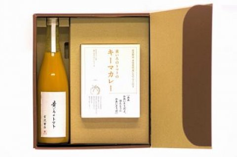 <1>ギフトセット / 黄いろのトマト100%ジュースと黄いろのトマトのキーマカレー(桐箱入)