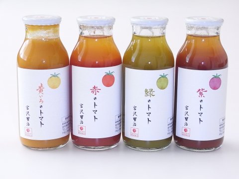 「黄いろのトマト100%ジュース」、そして緑、紫の100%トマトジュースにつづき、赤のトマトジュースの販売を開始しました。