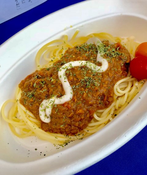 また、その場でお召し上がりいただけるキーマカレーパスタ、カップ入りのトマトジュースもご用意して皆様のお越しをお待ちしております。