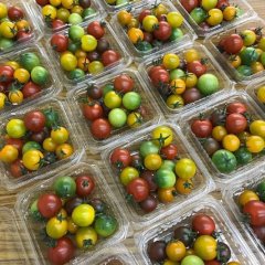 ミニトマトパック、黄いろのトマト100%ジュース(720ml/180ml)、黄、緑・紫・赤のトマト100%ジュース(各色 180ml)、黄いろのトマトのキーマカレー、黄いろのトマトラスクの他、その場でお召し上がり頂ける、カレーパスタ、カレーサンド、カップ入りトマトジュースもご用意してお待ちしております。