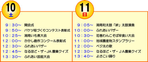 「なるほど・ザ・JA農業クイズ」や、「湘南いも煮大会」、「花巻わんこそば早食い大会」など盛りだくさんの2日間となっております。