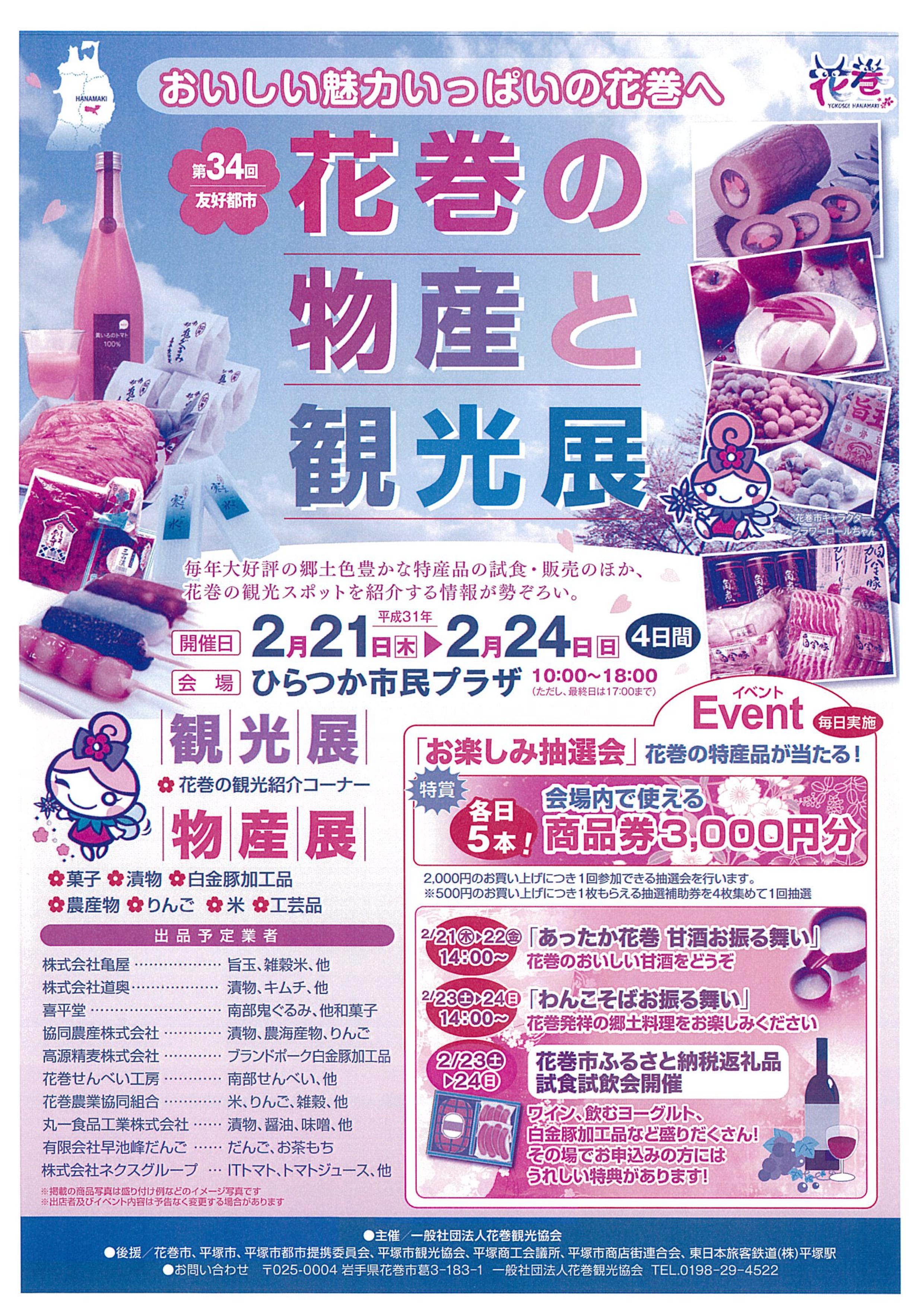 ひらつか市民プラザ「花巻の物産と観光展」へ出店しています。