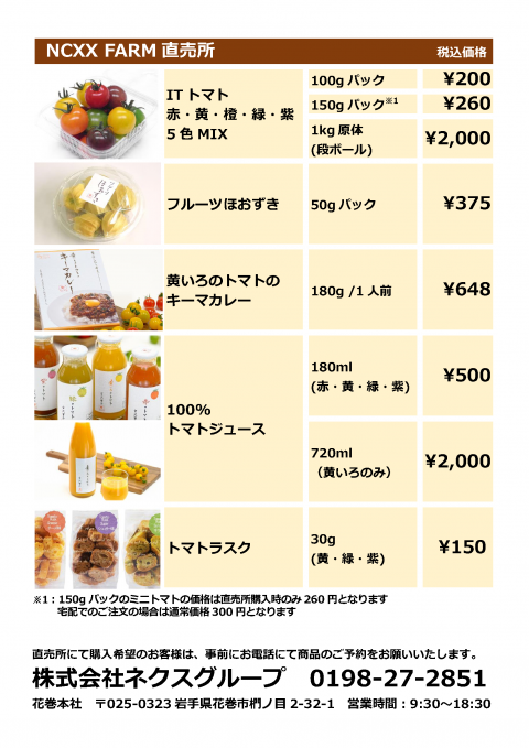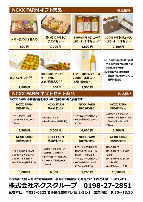 なお、NCXX FARMの商品は花巻市内のお土産店や産直等で販売しておりますが、ネクスグループ花巻本社でも購入可能です。贈り物に最適なギフト商品も多数取り揃えております。