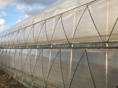 NCXX FARMではパイプハウスを覆っているフィルムを2重にし、その間に空気を入れ風船のように膨らませています。