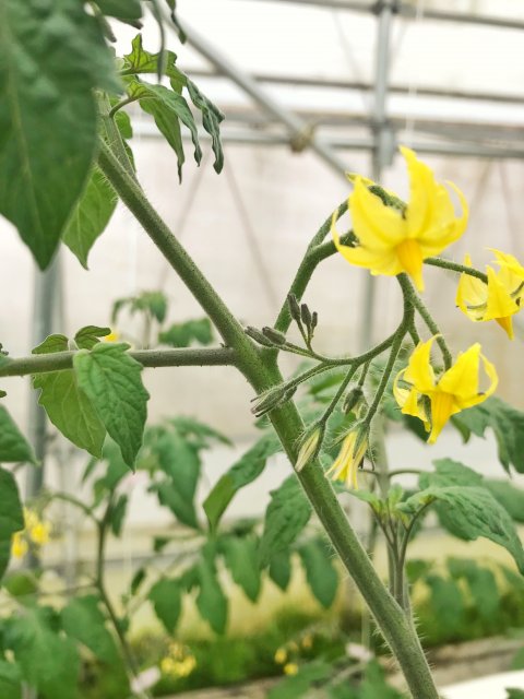 12月に定植を行なったITトマトにもたくさんの花が咲き、実をつけ始めました。