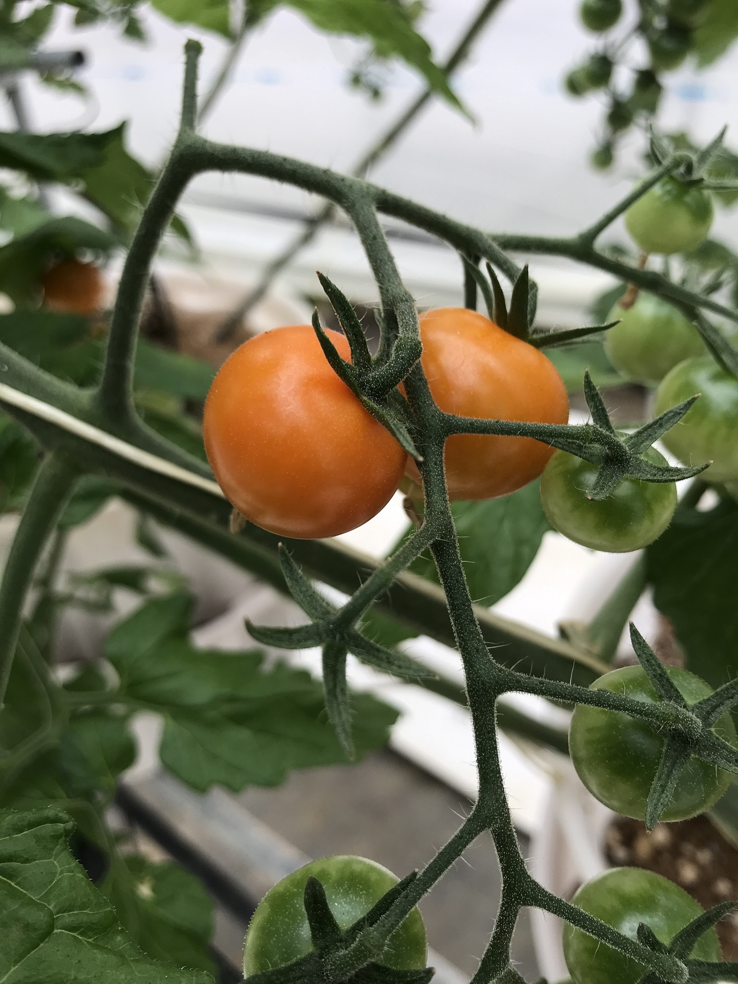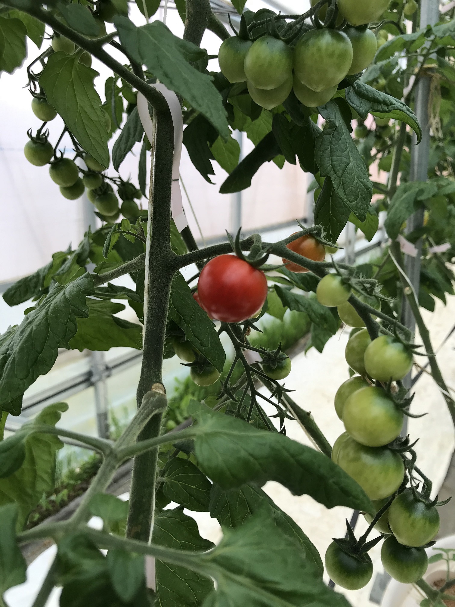 最近はゴールデンベリーのお知らせがメインとなっておりましたが、年明けに定植したミニトマト達も順調に成長を続けており、やっと色づき始めてきました。
