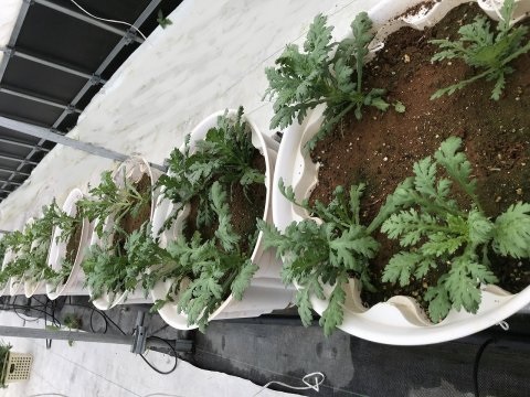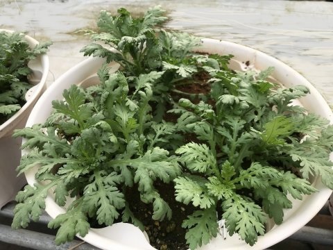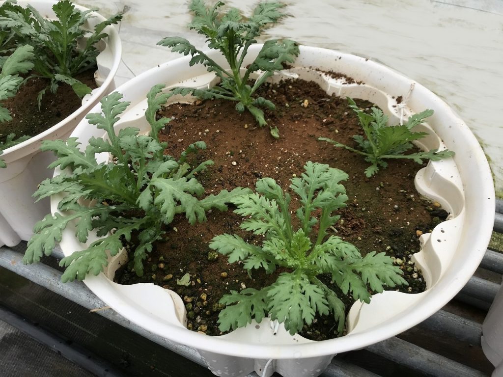 さて、試験栽培のその後ですがシュンギクがそこそこ大きくなってきています。