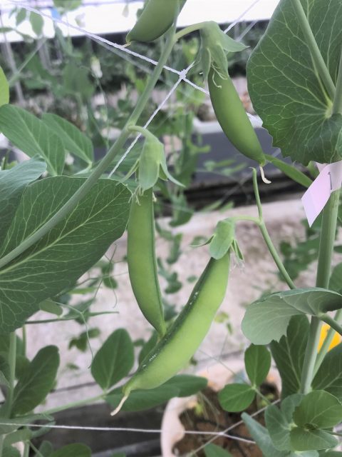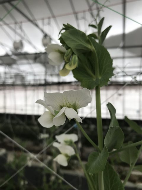 また、試験棟ではスナップエンドウも栽培しており、花が咲き、実が膨らんできており収穫時期を待っております。