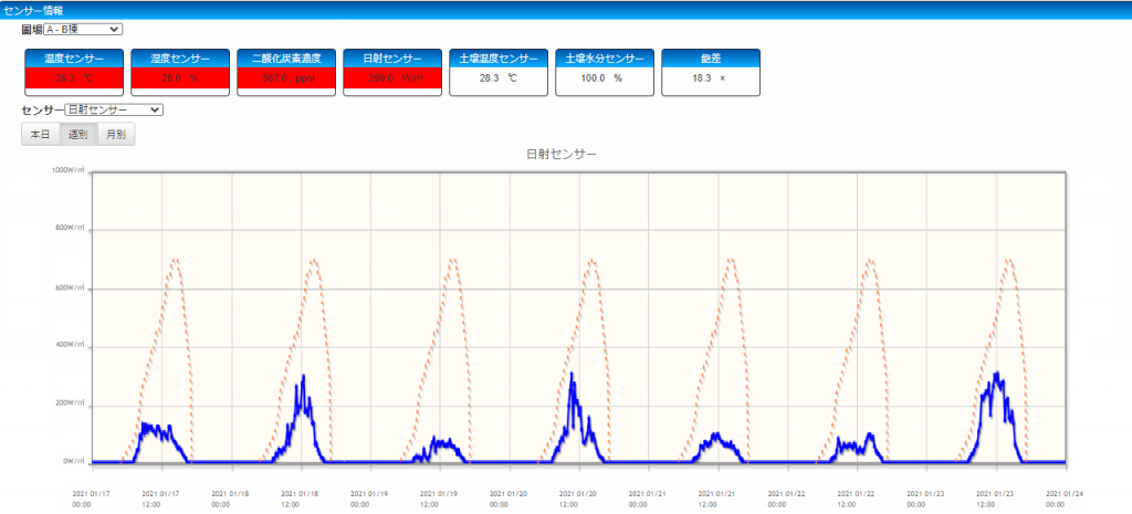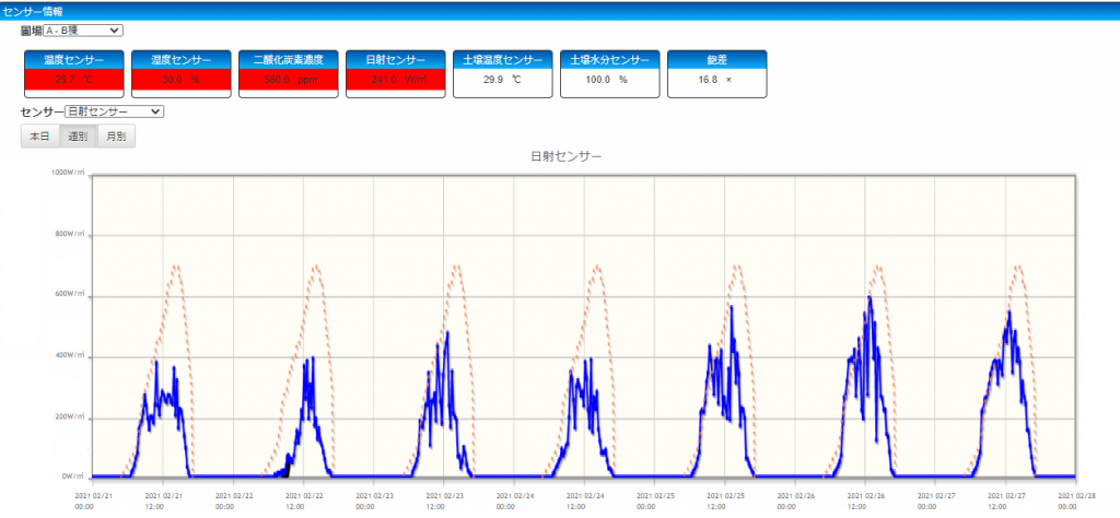さて、そのような天候の変化をハウス内のセンサーはどのように