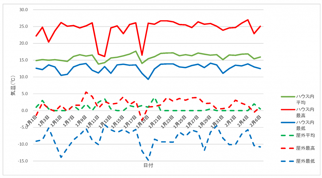 温度上昇を自動制御で換気を行うなどし、生育に最適な