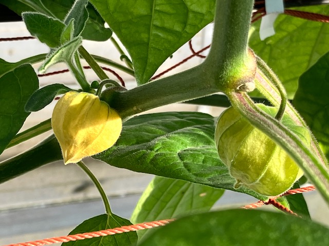 そんな中、ハウス栽培のゴールデンベリーは順調に生長しております。 ゴールデンベリーの色づき具合を探してみると、数個ですが、黄色く色づき初めているものを見つけました。収獲時期が待ち遠しいです。