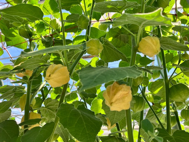 今週は梅雨の中休みを思わせる夏日が続き、ハウス栽培のゴールデンベリーは順調に生育しています。気温上昇に伴い、環境制御の装置が作動し、遮光カーテンが自動で閉まるようになっています。生育には欠かせない日照ですが、温度制御でコントロールしています。
