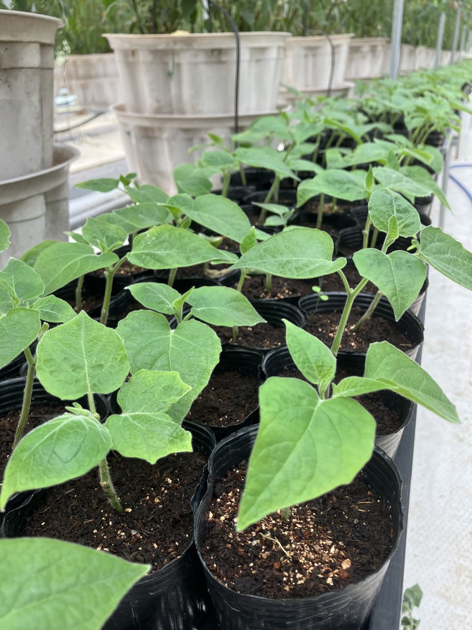 ネクスファームでは9cmのポリポットに育苗培土を入れ、セルトレイで