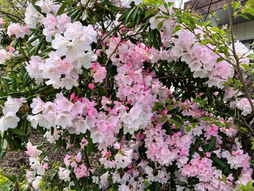 5月に入り、すっきりしない天気が続いていますが、ネクスファームのある花巻の敷地では桜につづき、シャクナゲがきれいに咲き誇っています。