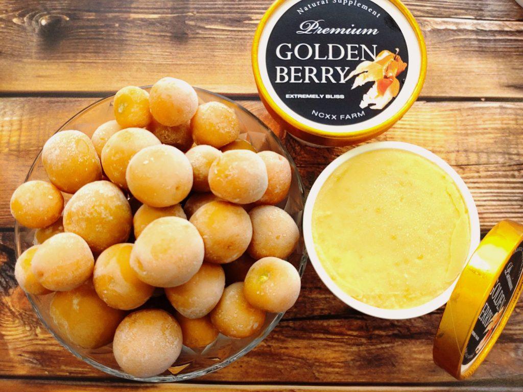 ゴールデンベリーを贅沢にたっぷり使ったゴールデンベリープレミアムアイス、そのままシャーベット感覚で食べられるフローズンゴールデンベリーは暑い季節におすすめです。