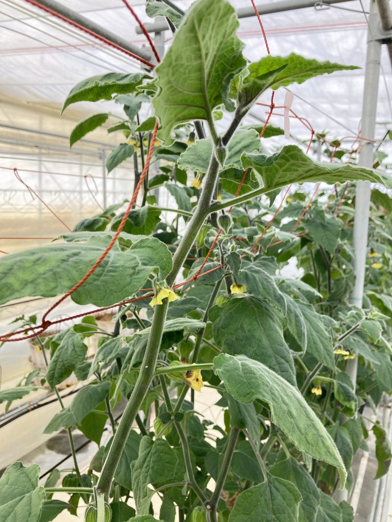 そんなビニールハウスの中ではゴールデンベリー(食用ほおずき)が成長中😊