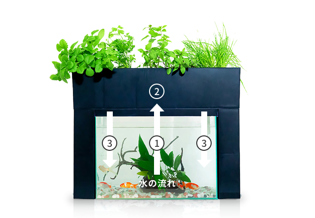 キレイな水が魚の水槽に戻り、これを繰り返して循環します。