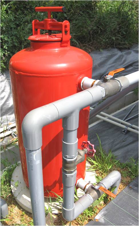 サンドフィルターにより、畑地灌漑用水等の藻類、有機物のろ過を行います。 |